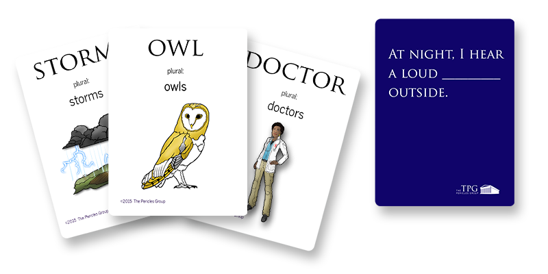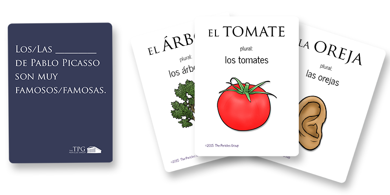 All VERBA players benefit from seeing high frequency words, with many repetitions, in a context that fosters authentic learning and comprehensible input informed by best practices in second language acquisition. As with all of The Pericles Group's educational games, the play objectives and the learning objectives are one in the same. Players win by making comprehensible sentences, scaffolded by the cards, the images, and the helpful hints included on the sentence cards. We always want to ensure that the learners are seeing correct forms and those forms are continually reinforced by the mechanics.